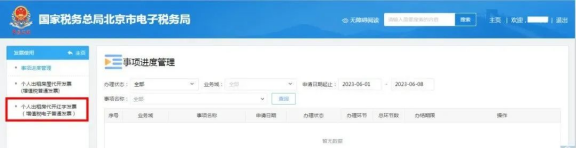 登录电子税务局,进入后选择“我要办税 – 发票使用”,进入“个人出租房屋代开红字发票(增值税电子普通发票)”