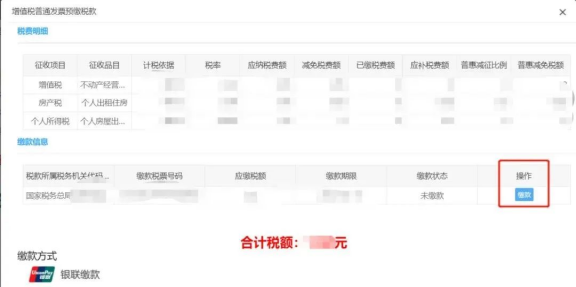 (1)用户登录电子税务局,进入“个人出租房屋代开发票(增值税电子普通发票)”查看审核结果。若审核不通过,可以修改后继续提交;若审核通过,可以进行“缴款”操作。