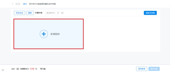 (2)跳转到财产和行为税纳税申报表界面,系统自动带出本期应申报的税种信息。