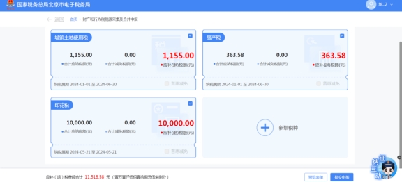 (1)自动带出本期应申报的所有税种卡片,纳税人可以自行勾选单个或多个税种进行申报。
