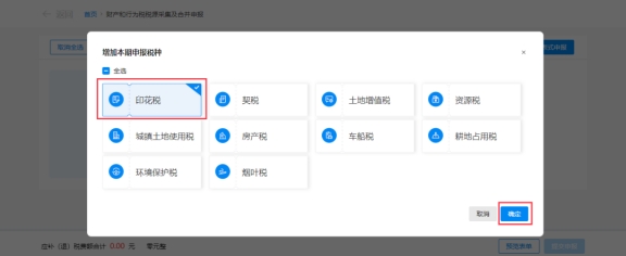 (2)勾选增加本期申报税种:“印花税”,点击【确定】。
