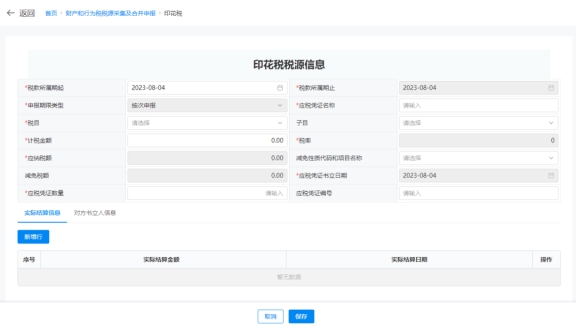 (4)点击卡片上的【税源采集】,系统跳转到印花税税源明细表界面。