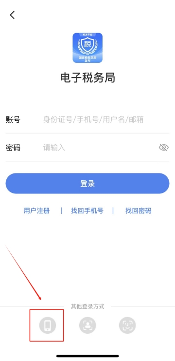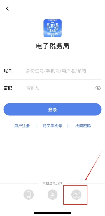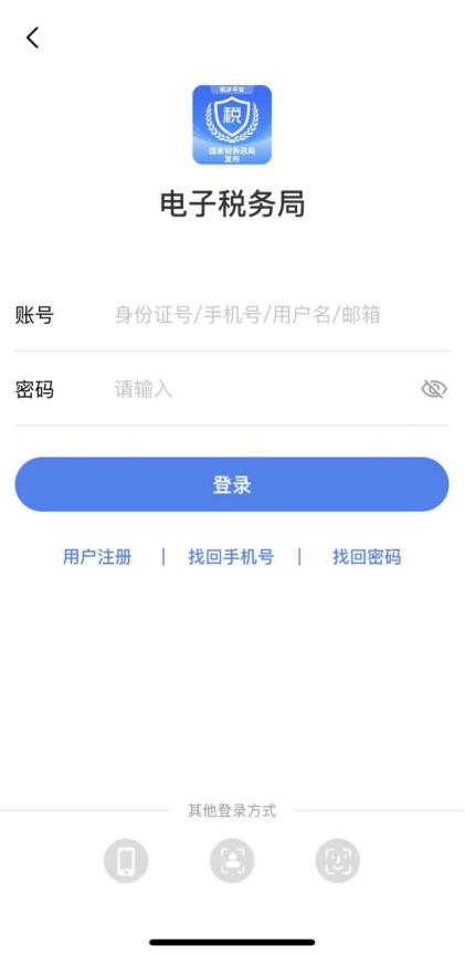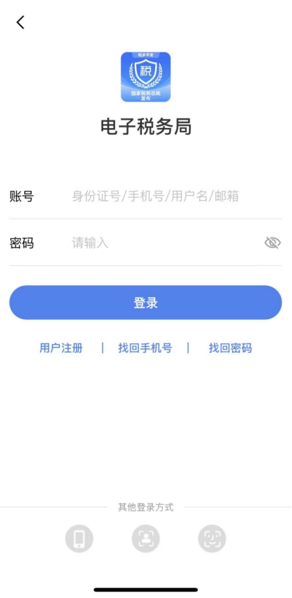 对于已有电子税务局或税务APP账号的用户,直接进行用户登录。登录方式可选择账密登录、短信登录、扫脸登录、指纹/面容登录。