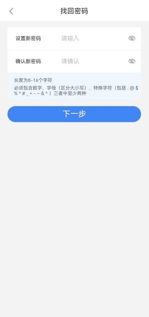 进入登录页面,点击“找回密码”进入找回密码界面。输入账号信息后进入认证页面,可通过短信认证或扫脸认证方式进行认证后,输入新密码,完成密码找回。