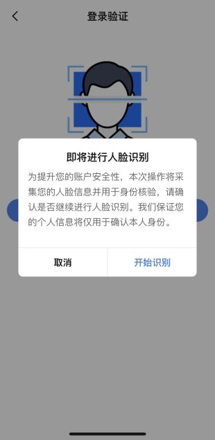 其他登录方式中点击扫脸登录,切换进入扫脸登录页面。在登录框中输入证件号码(或手机号码、用户名、邮箱),点击下一步,进入扫脸认证页面。根据页面提示或语音提示作出相应动作,完成人脸信息采集后,完成用户登录。