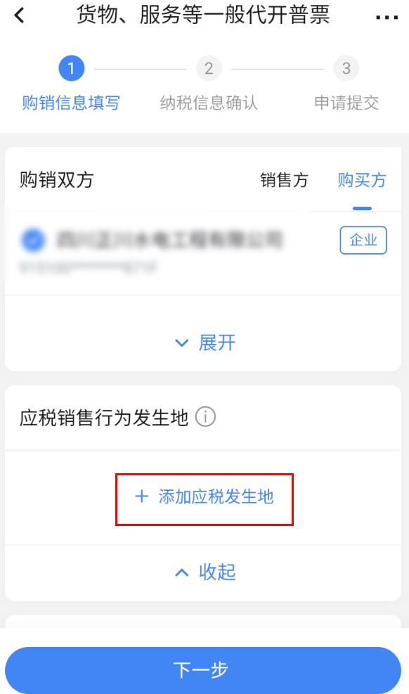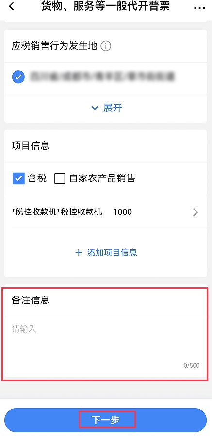 2.6、纳税人可在备注信息栏输入备注信息,点击【下一步】。