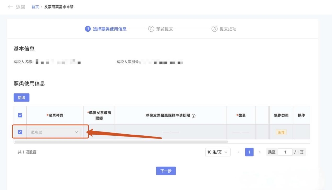 二、“票类使用信息”中选择“新增”,勾选“数电票”。