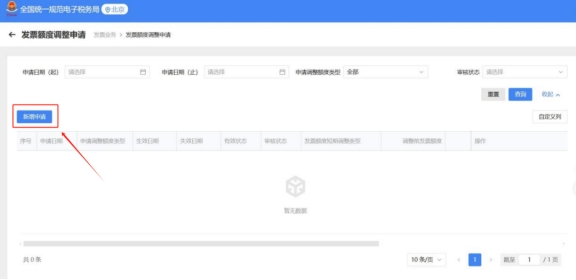 二、在“发票额度调整申请”界面,点击【新增申请】。