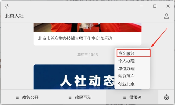 移动端:“北京人社”微信公众号