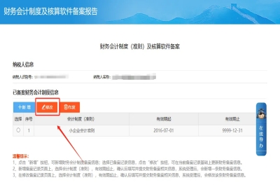 如何修改财务会计制度备案?  答、您好,请您在电子税务局点击:【我要办税】—【综合信息报告】 — 【制度信息报告】 — 【财务会计制度及核算软件备案报告】,在这个页面选择现有的备案制度点击“修改”进入后根据实际需求填写提交,修改成功后请您返回到【..