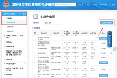 二、税费申报及缴纳—申报清册—按期应申报页面在右上角点击“重置申报清册”,然后带出新的报表后请再填写申报即可。
