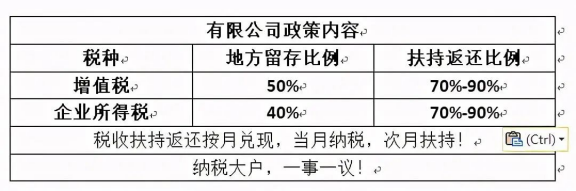 税收奖励返还的主要内容就是:在增值税、企业所得税的地方留存部分的基础上,进行70%-90%比例的税收返还,一是对企业纳税的奖励;同时也是缓解企业的税负压力和减轻企业运营成本,以期待企业做大做强,后期为政府提供更多的税收收入。