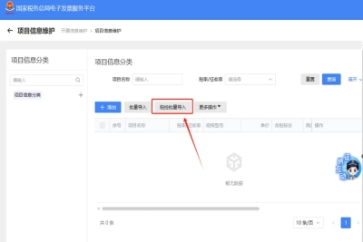 怎样把税控开票软件中的编码信息导入到电子税务局开票业务里?  答、您好,请点击【我要办税】—【开票业务】 — 【开票信息维护】界面,【项目信息维护】与【客户信息维护】??榫С帧八翱嘏康既搿惫δ埽牒蟮慊鳌舅翱嘏康既搿?,界面右侧会弹出“批量..
