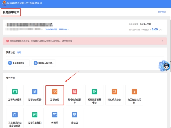 二、税务数字账户—发票查验。