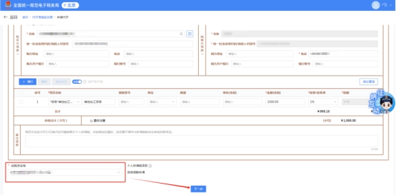 如需在发票票面备注其他信息,可在“备注信息”一栏填写需要备注的内容,否则无需填写。点击“下一步”,进入纳税信息确认页面。