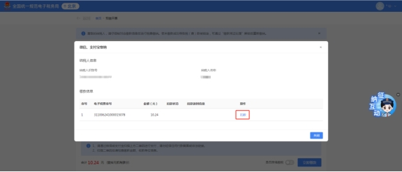 进入后,可以看见自己审核通过的发票,可以查看详情及缴税,点击缴税,进入缴税流程。