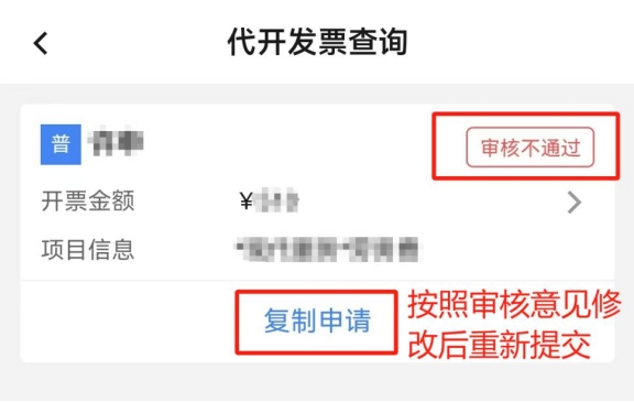 在查询结果中找到本次提交的申请,若该条申请右上角显示的状态为“待缴费”,则表示该申请已审核通过,点击“缴费”进入税费缴纳页面(流程如下);若该条申请右上角显示的状态为“审核不通过”,则表示该申请未通过审核,您可点击该条申请进入详情页查看审核意见,并根据审核意见修改后重新提交申请(点击查询结果页面该申请下方的“复制申请”可直接复制上次填写的信息,您可在此基础上进行修改)。