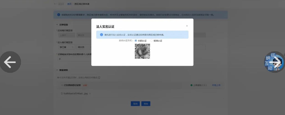 法人扫码或收取短信进行实名认证。