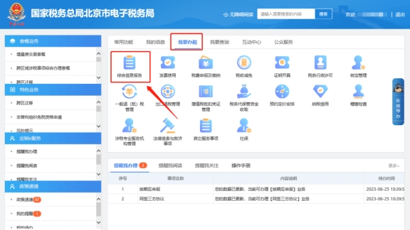 一、我要办税—综合信息报告。