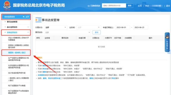 二、综合信息报告—资格信息报告—增值税一般纳税人登记。