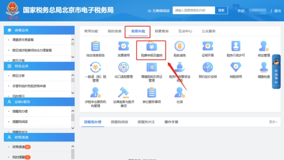 一、我要办税—税费申报及缴纳。