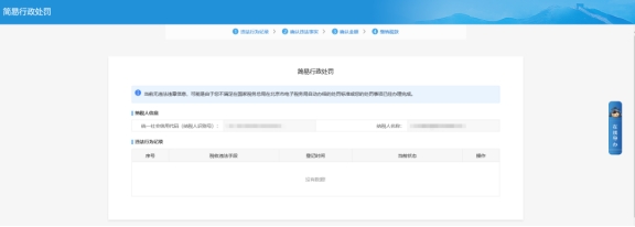 三、简易行政处罚菜单进入点击操作下面的受理按钮查看违法行为记录。确认违法事实后填写经办人姓名点击右上角的确认。
