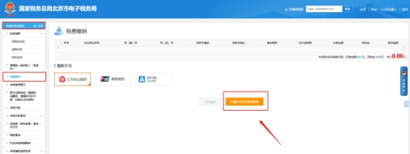 二、税费申报及缴纳—税费缴纳界面界面选择银行端打印缴款凭证前往银行缴款。缴款后再返回简易处罚界面查看状态。