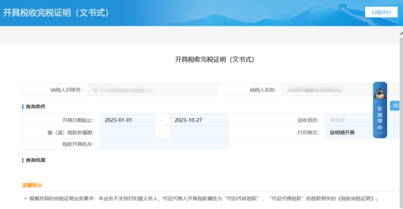 二、证明开具—税收完税证明(表格式)补开。