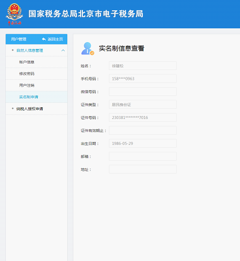 9.? 纳税人关联成功后,可进行实名制信息的查看。