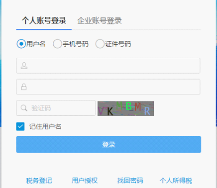 4.? 纳税人选择个人账号登录-用户名登录方式,输入用户名密码,点击“登录”按钮,进入实名申请页面。