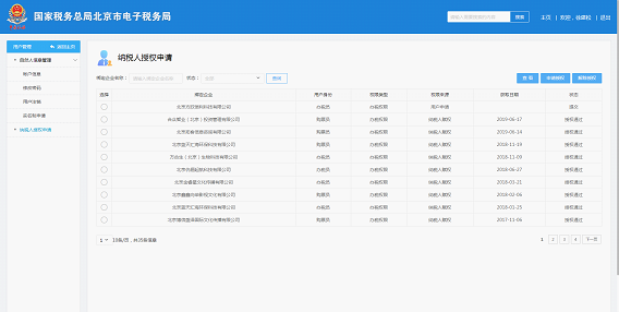 1)? 个人身份登录电子税务局后,打开纳税人授权申请,在绑定企业名称中输入需要绑定的企业名称,点击查询。选定需要绑定的企业,点击“申请授权”按钮。
