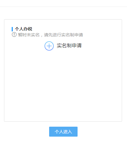 5.? 纳税人进入实名申请界面,首先进行个人办税实名申请,点击“个人进入或实名制申请”按钮。