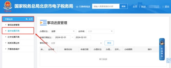 三、蓝字发票开具???,点击“立即开票”,在“项目名称”处输入信息,系统通过智能匹配提供相似选项供选择。