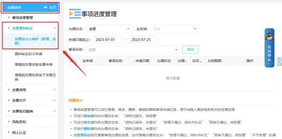 二、发票使用—发票票种核定—发票经办人维护(新增、变更)。