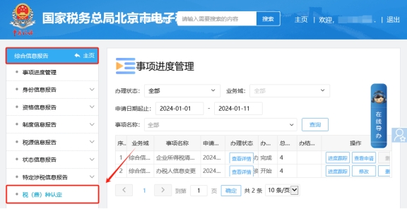 二、综合信息报告—税(费)种认定,备注提交删除;(本功能目前仅支持IE浏览器访问,请使用IE浏览器登录打开此功能)。