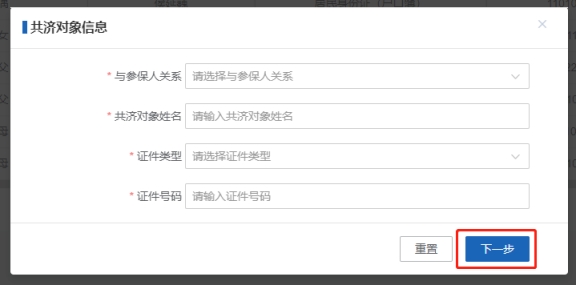 第五步:输入【共济对象信息】,点击【下一步】按钮。