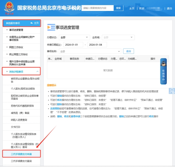 在电子税务局上如何申请三代手续费?