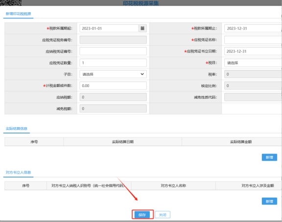 六、录入税源信息后点击下方【保存】。