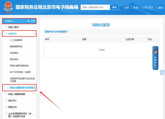 三、或互动中心—在线交互—网格化提醒类事项消息推送查看。