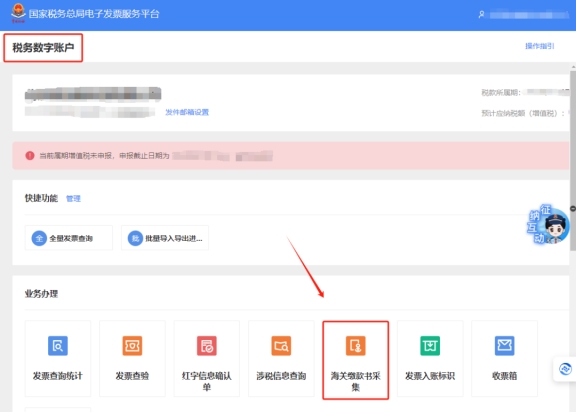 二、税务数字账户—海关缴款书采集。