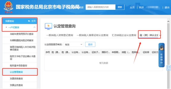 二、一户式查询—认定管理查询—税(费)种认定查询???,将认定信息是否有效选择为“全部”后进行查看。