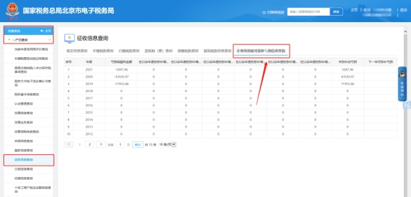 二、我要查询—一户式查询—征收信息查询在此界面查看企业所得税可弥补亏损信息查询。
