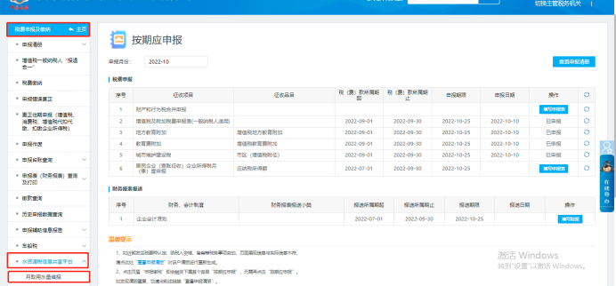 二、税费申报及缴纳—水资源税信息共享平台—月取用水量填报。